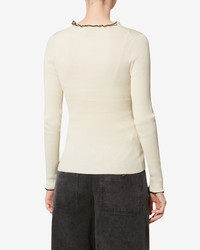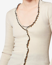 Lightweight cotton and silk blend cardigan Ruffled V-neckline Long sleeves Buttoned front with contrasting ruffled trim Fitted Style: CA0167FAD1L10I01BK IZAE 55% silk, 45% cotton (1) Care & Sustainability Cold hand wash with suitable detergent For more details, see the instructions on the composition label the history and environmental impact of this product