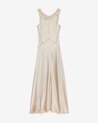 Long silk satin and lace dress Round neckline Ladder stitch lace trim on the neckline, armholes, and hem Open back Flared and fitted midi length Style: RO0891FAC3J05I23CH JADELIA 94% silk, 6% Lycra