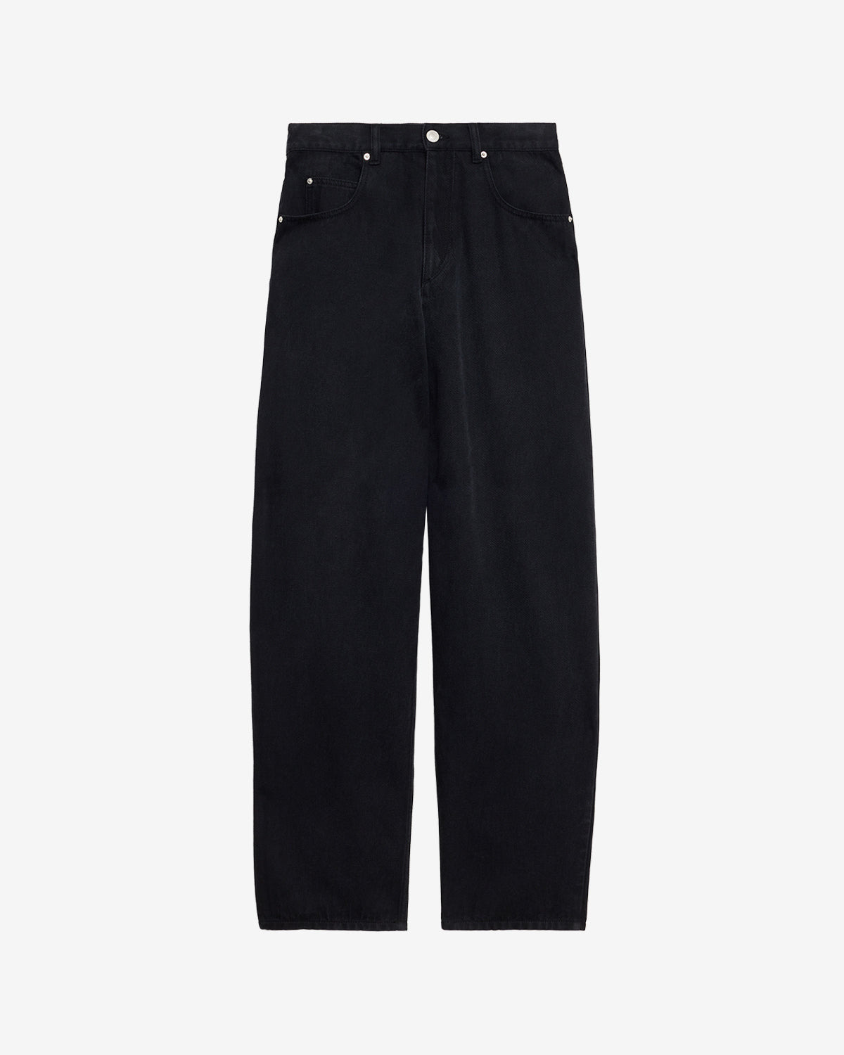Flowing denim jeans Fitted waistband with loops Done up with a metal button and hidden zipper 5 classic pockets Leather label in back with an embossed "Isabel Marant" logo Metal rivets Silver-finish metal details Medium-rise waist Relaxed fit Style: PA0590FAB1H07I02FK JENNY 77% Lyocell, 23% cotton
