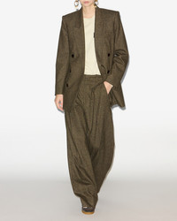 Striped wool blend suit jacket Italian suit collar Structured padded shoulders Long sleeves Straight buttoned cuffs Chest pocket Flap pockets Buttoned crossover front Satin lining Straight cut Style: VE0538FCC3F01I50DZ JEVIMA 40% wool, 22% polyester, 14% viscose, 13% polyamide, 9% cashmere, 2% elastane