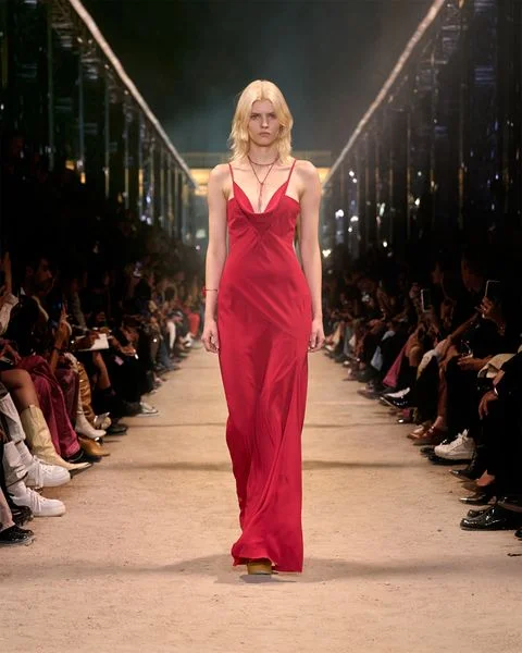 64% acetate, 36% silk Long dress with thin straps Cowl neck Drop-shaped opening in back Style: RO0420FA-B2J02I KAPRI