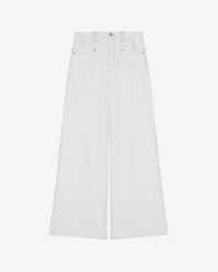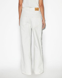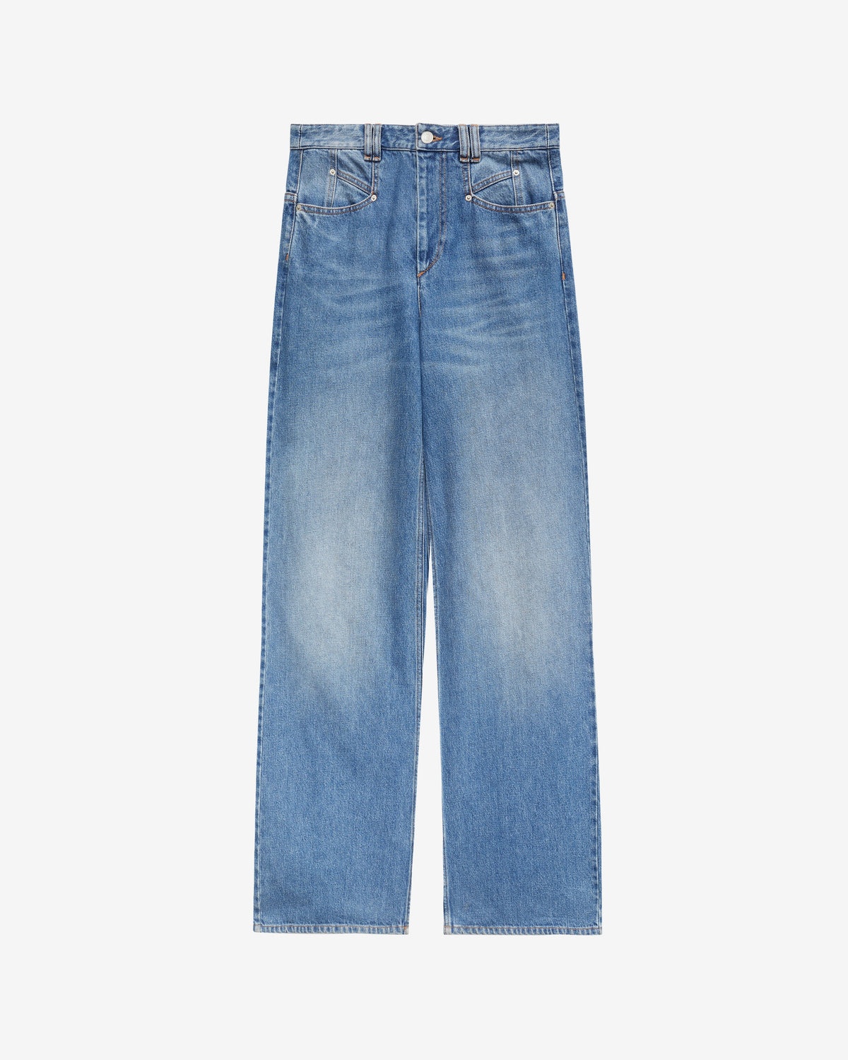 High-rise loose fit jeans in cotton denim Fitted waistband with double loops Engraved metal button tab with a zipper Side pockets Patch pockets on the back Leather label in back with an "Isabel Marant" logo Metal rivets Silver metal details Flared cut Style: PA0052FAB1H06I30BU LEMONY 100% cotton