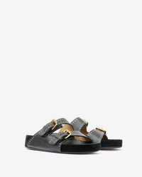 Studded leather buckle sandals Double buckle closure Leather sole Reference: SD0118FAB1B11S01BK LENNYO 100% bovine leather