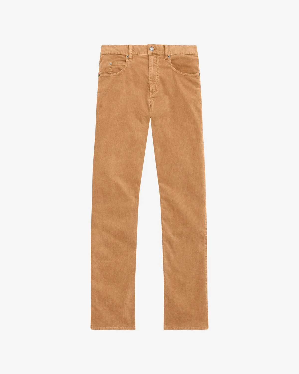 Corduroy pants Fitted waistband with loops Engraved metal button tab with a zipper 5 classic pockets Metal rivets Leather label in back with an "Isabel Marant" logo Regular fit Style: PA0469HDC1G02H50CM LEWYS 98% cotton, 2% elastane