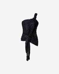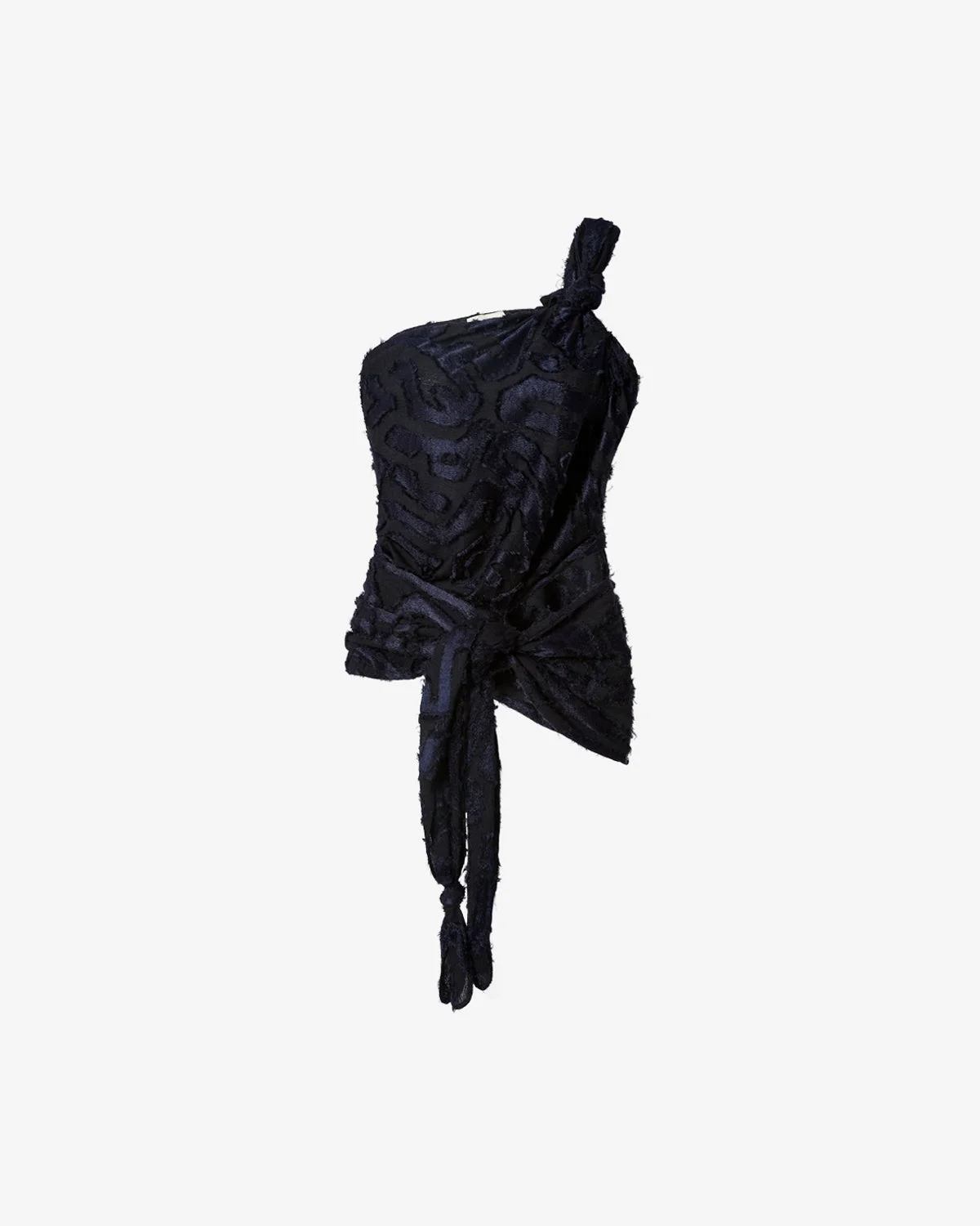 Asymmetric jacquard jersey fil coupe pattern top Fitted cut Asymmetrical tie-up neckline Cut-out style effect in front Two asymmetrical tie-up tails Style: HT0874FAD2K04I30FN 100% viscose Care & Sustainability Cold hand wash with suitable detergent For more details, see the instructions on the composition label the history and environmental impact of this product