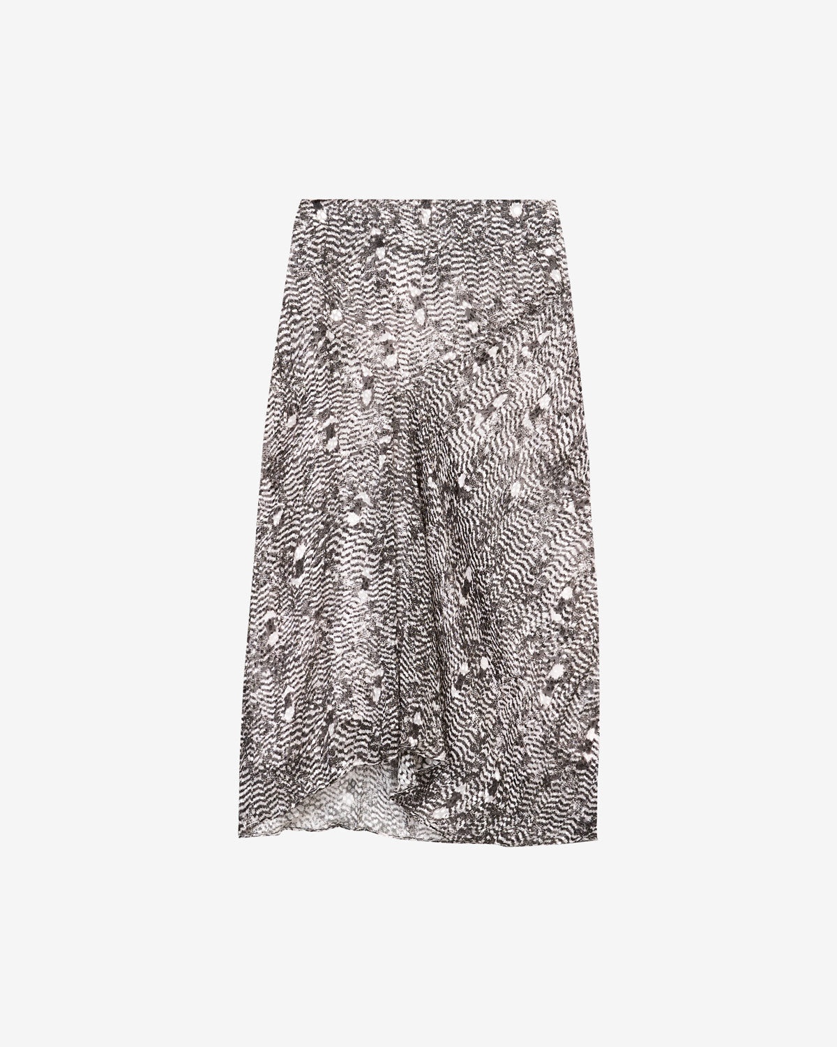 Midi skirt in printed burnout velvet Fitted waistband Inlaid yoke Done up in back with a hook and a hidden zipper Asymmetrical hem Crepe lining Flared and flowing cut Style: JU0080FBC1J06IBKEC LISANNE 60% viscose, 40% silk