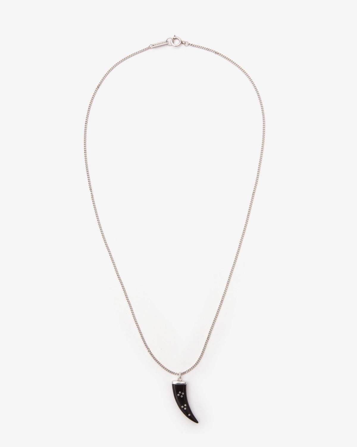Chain necklace with buffalo horn pendant and metal detail Silver-finish brass chain Clasp with spring ring Plate with an engraved "Marant" logo Length: 67 cm / 26.4 in. Style: SA0011HAC1B07TBKSI MAJI 70% brass, 20% buffalo horn, 10% tin