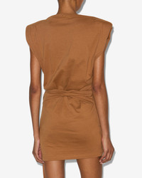 Draped cotton jersey dress Boat neck Structured shoulders with pads and pleats Short sleeves Draped tied tail on the side Short and fitted Style: RO0874FAA1N41I50CA MARIELLE 100% cotton