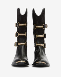 Suede and calfskin leather boots Adjustable metal buckle straps Gold-finish heels and toes Pointed toes Cuban heels Soft leather insoles and outsoles Soft leather lining Heel height: 3 cm / 1.2 in. Style: BO0213FAD1A39S01BK MEXIA 55% suede calfskin leather, 45% calfskin leather Care & Sustainability the history and environmental impact of this product