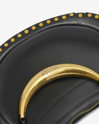 Calfskin leather hand and shoulder bag Carried by hand, on the shoulder, or crossbody style Jeweled leather and engraved gold-finish metal handle Adjustable leather shoulder strap Removable handle and straps with engraved snap hooks Engraved metal rings Edge adorned with metal studs Embossed "Isabel Marant" logo on the front Leather zipper Card pocket inside with an embossed "Isabel Marant" logo Gold-finish metal details Size: 33 x 26 x 9 cm / 13 x 10.2 x 3.5 in. Style: PP0001FAB2C11MBKGO NAOKO 100% calfskin leather