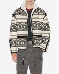 Jacquard jacket with graphic patterns and shearling collar Stand-up collar Done up with a zipper Long sleeves Side pockets Contrasting faux leather bias finishes Shearling style lining Cropped cut Style: VE0274HBC1D03HECBK NELKIS 100% cotton