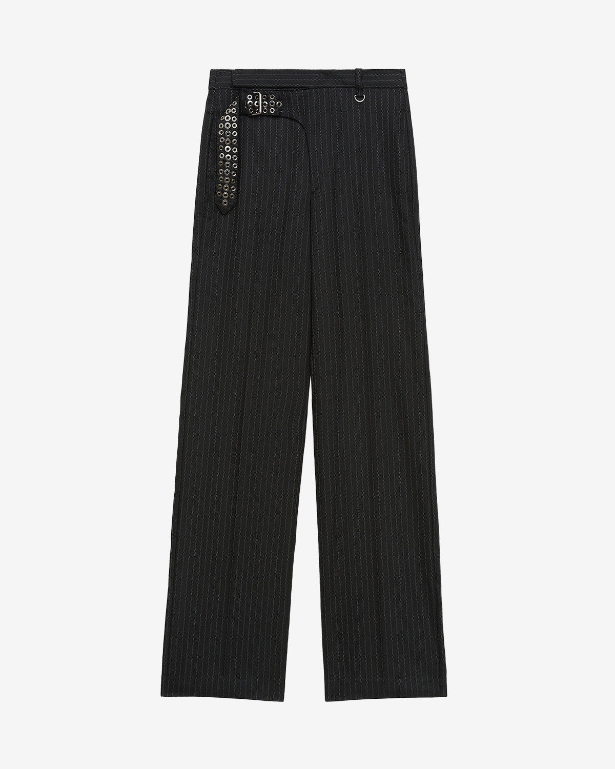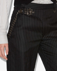 Straight-leg tennis stripe suit pants Virgin wool Fitted waistband with eyelets and loops Piped side and back pockets Hidden fastener Pleated front Medium-rise waist Style: PA0607FA-C4F01I NOANNE 84% virgin wool, 16% polyester