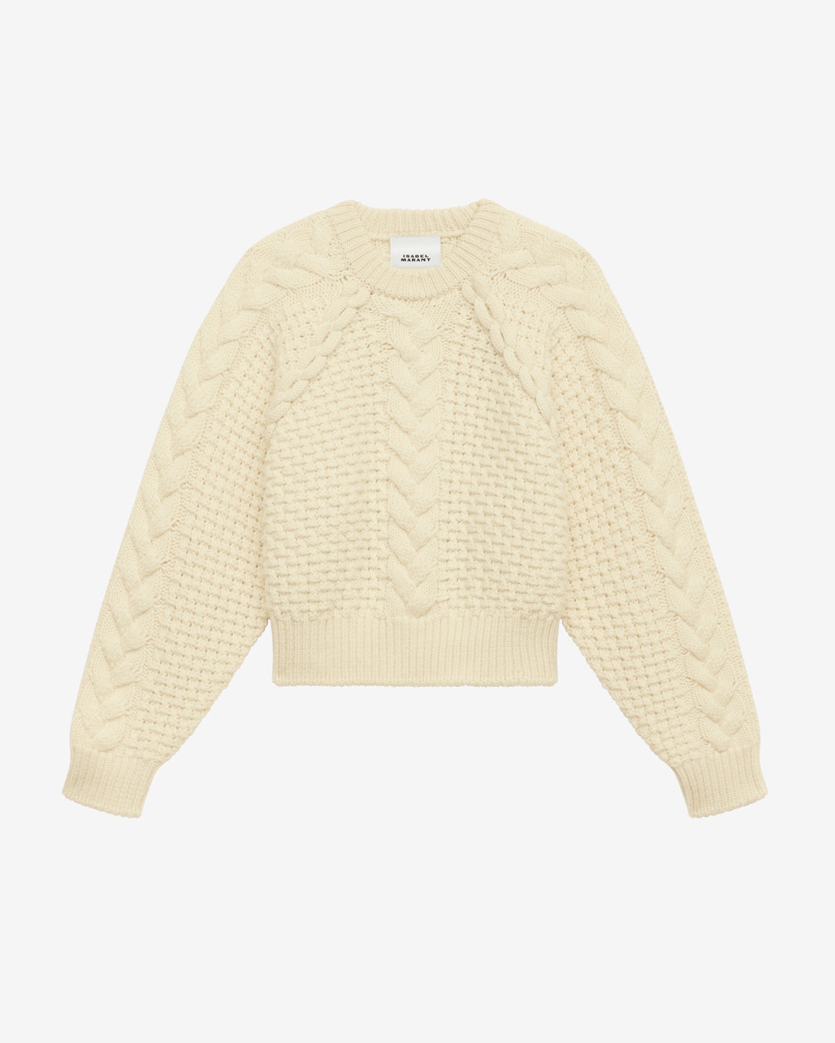 Short sweater in plain-colored virgin wool cable knit Round neckline Long sleeves Ribbed finishes 100% virgin wool