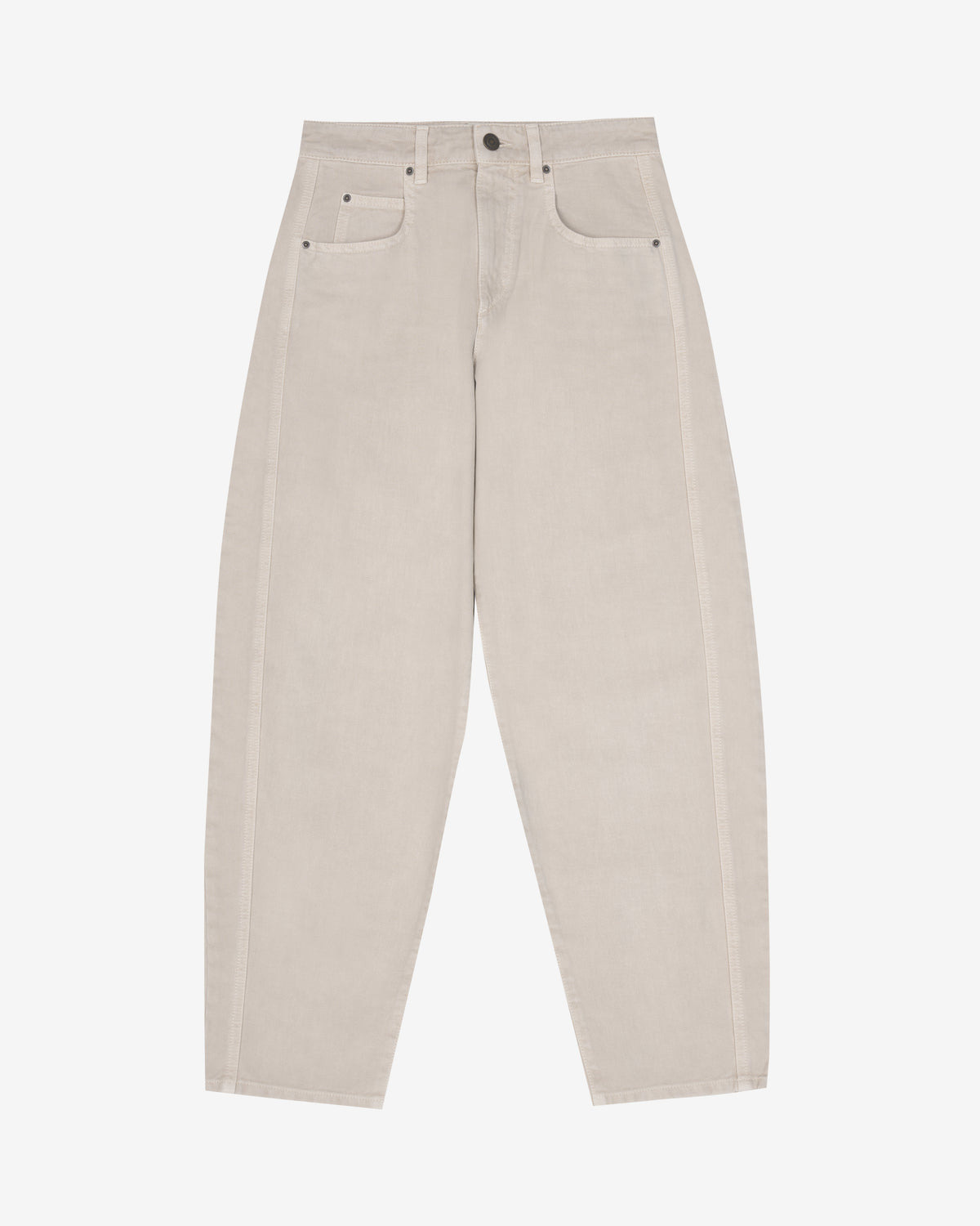 Denim barrel jeans Fitted waistband with loops Done up with a metal button and hidden zipper 5 classic pockets Leather label in back with an embossed "Isabel Marant" logo Metal rivets Silver-finish metal details Medium-rise waist Style: PA0584FAC3H01I23EC ORIANE 80% cotton, 20% hemp