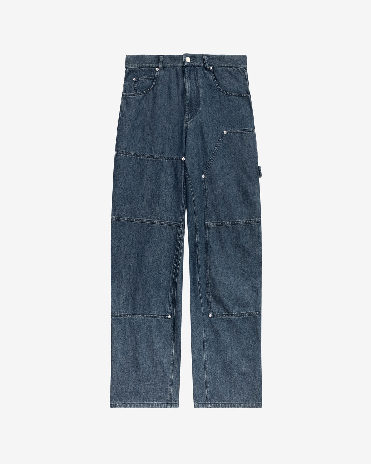 Wide-leg jeans in fine denim Fitted waistband with loops Engraved metal button tab with a zipper Slant pockets on the sides Matching patches in front with rivets Decorative tab on the side Patch pockets on the back Leather label in back with an "Isabel Marant" logo Silver-finish metal details Medium-rise waist Style: PA0498HAC1H06H30FB ORSON 100% cotton