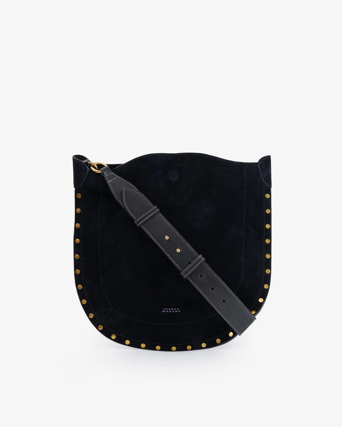 Shoulder bag in suede calfskin leather Carried on the shoulder or crossbody style Adjustable shoulder strap with studded buttons Engraved metal rings Edge adorned with metal studs Magnetic fastener Removable zippered pouch with a studded button Embossed "Isabel Marant" logos Golden metal details Twill lining Size: 30 x 30 x 6 cm (11.8 x 11.8 x 2.4 in.) Reference: PP0201FA-B2C03M OSKAN SOFT 100% suede calfskin leather