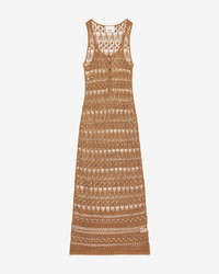 Transparent dress in fine crochet Round neckline Buttoned front Sleeveless Ribbed finishes Long and fitted Style: RO0814FAC2L04I12GO PERNILLE 83% viscose, 17% metallic polyester
