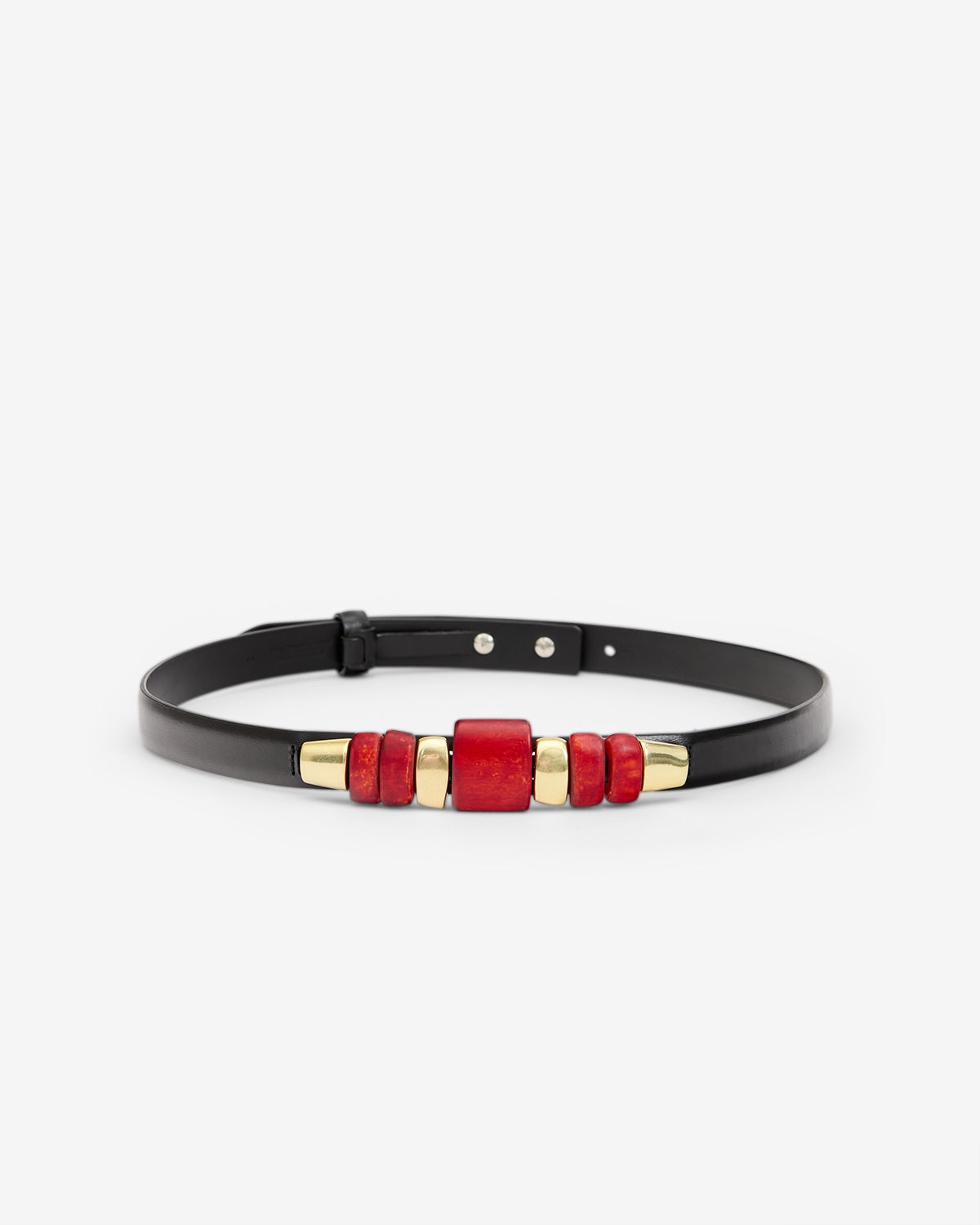 Cowhide leather belt Asymmetrical resin and clear antique beads in middle Adjustable with studs Width: 2 cm / 0.8 in. Style: CE330BFAC2A01AHELS RAISSA 70% bovine hair, 15% brass, 15% resin