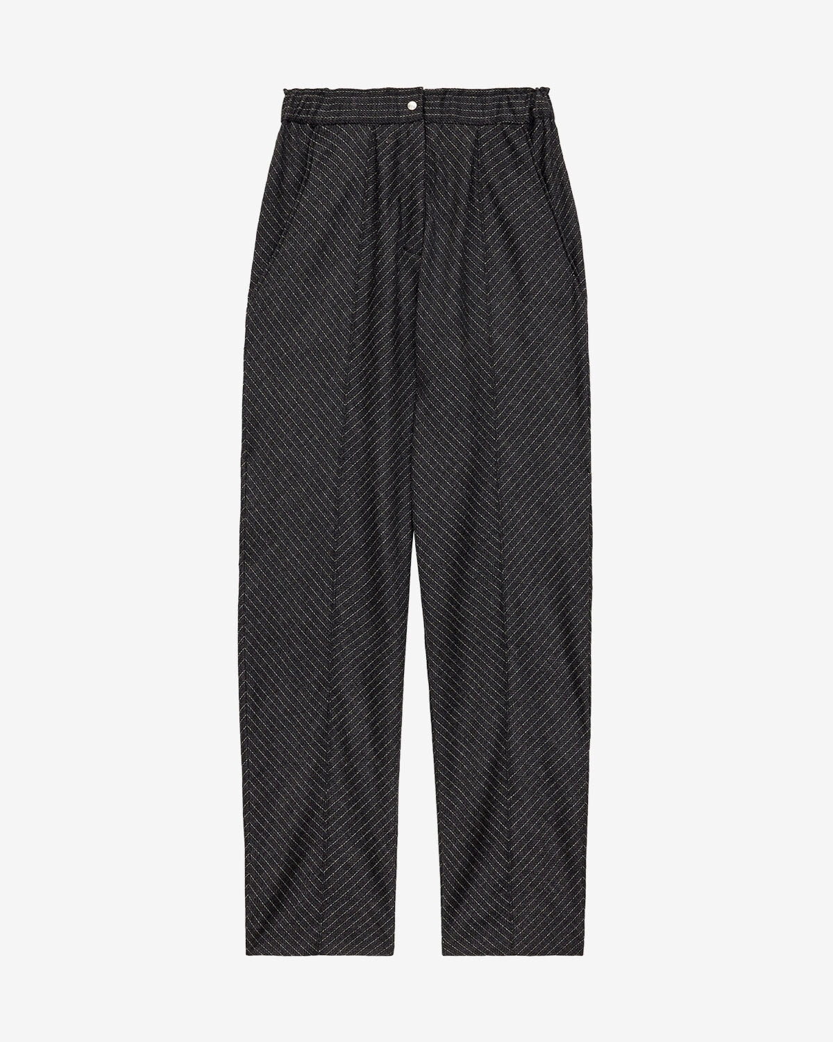 Striped pleated virgin wool and cotton pants Elastic waist Buttoned Slant pockets on the sides and piped pockets in back Straight cut Style: PA0620FA-C4J12I RAKIA 86% virgin wool, 14% cotton