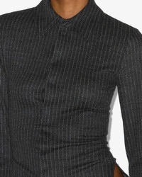 Virgin wool and cotton tennis stripe shirt Shirt collar Long sleeves with straight buttoned cuffs Hidden button tab Rounded hem Fitted cut Style: CH0266FA-C4J12I ROMEA 86% virgin wool, 14% cotton