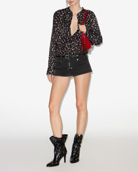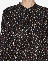 Silk polka dot blouse Tunisian neckline Long sleeves with straight buttoned cuffs Patch pocket on the chest Buttoned front Inverted rear pleat and rounded hem Relaxed fit Style: CH0274HA-C4I03H NATHAN 90% silk, 10% elastane