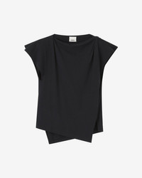 Asymmetrical plain-colored cotton T-shirt Boat neck Structured padded shoulders Short sleeves Side slit Asymmetrical hem Relaxed fit Style: TS0097FAA1N41I01BKI SEBANI 100% organic cotton Care & Sustainability Machine wash on a gentle cycle, inside out and at a maximum temperature of 30°C For more details, see the instructions on the composition label Organic Textile Certified by Ecocert Greenlife - 257833 The GOTS certification attests that the cotton used for this item is organic. It guarantees respect for the environment and responsible social practices at all stages of its production. the history and environmental impact of this product