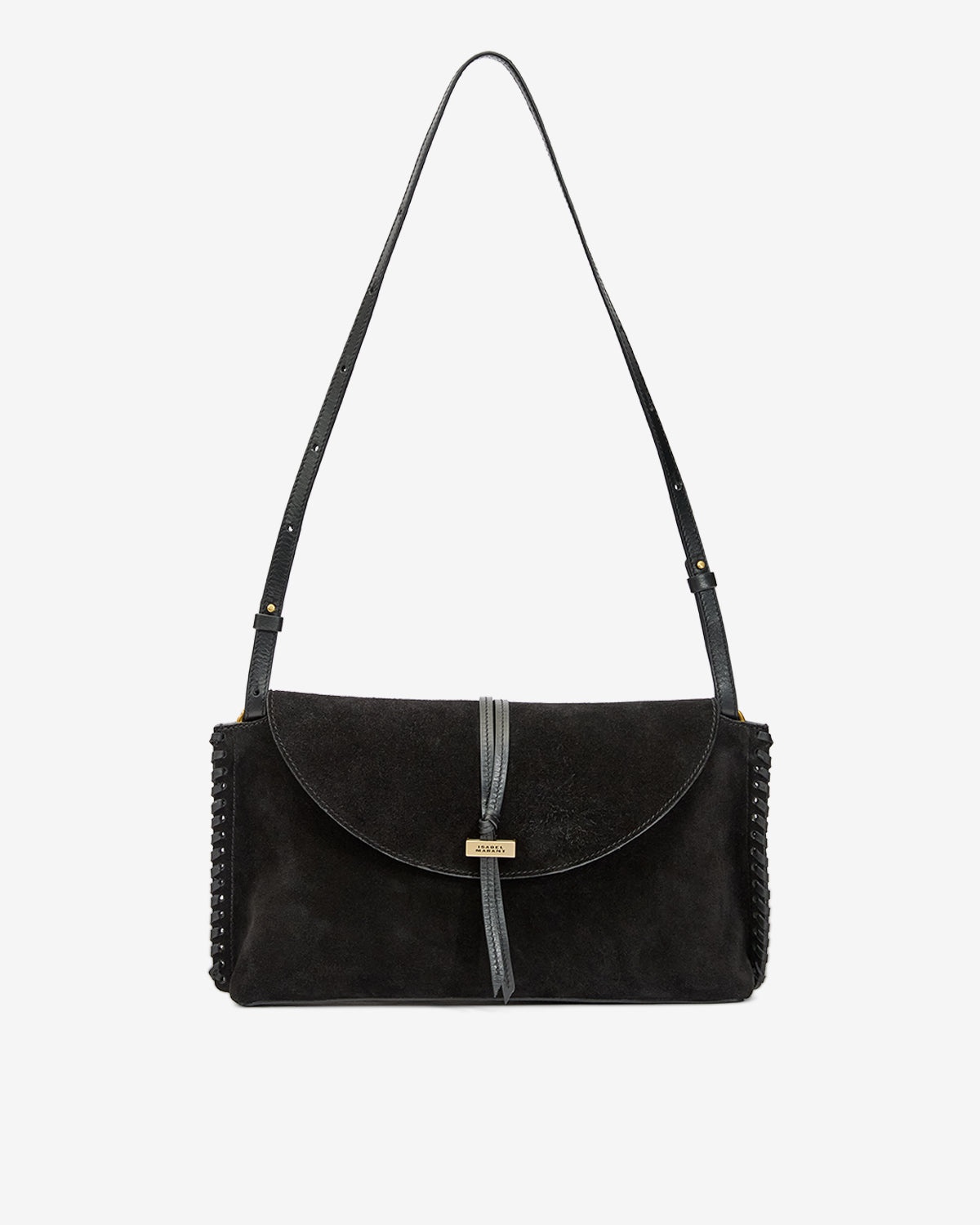 Clutch bag in braided suede calfskin leather Carried by hand or on the shoulder Adjustable leather handle with studded buttons Magnetic flap Tied strap in front with engraved metal "Isabel Marant" logo Edges adorned with soft braided leather Size: 30 x 20 x 10 cm / 11.8 x 7.9 x 3.9 in. Style: PO0044FBC1C12M01BK SILAO 100% suede calfskin leather
