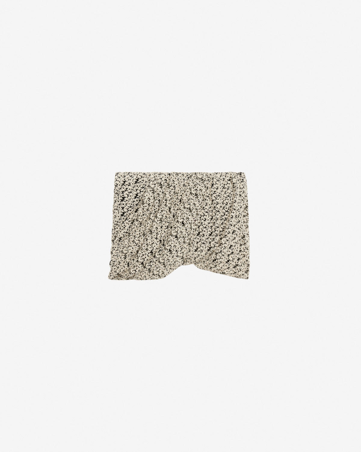 Embroidered floral pattern tulle mini skirt Draped tails Done up in back with snap buttons, hooks, and a zipper Short and fitted Style: JU0393FAC3J07IECBK STACYA 97% cotton, 3% polyester