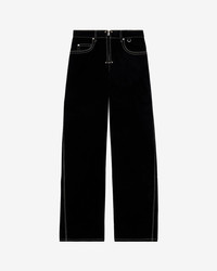 Wide-leg velvet jeans Fitted waistband with loops Done up with a visible zipper 5 pockets and a side patch pocket Contrasting topstitches Leather label in back with an embossed "Isabel Marant" logo Metal rivets and waist D-ring detail Relaxed fit Style: PA0650FA-C4H02I STELYNA 97% cotton, 3% elastane