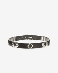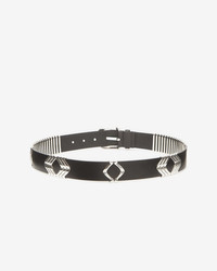 Calfskin leather belt Adjustable with a metal buckle Leather loop Metal decorations Width: 3.5 cm / 1.4 in. Style: CE001BFAA1A01ABKSI TEHORA 50% calfskin leather, 50% zamak Care & Sustainability the history and environmental impact of this product