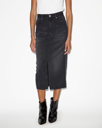 77% Lyocell, 23% Cotton p>Fine denim midi skirt Mounted belt with loops Metal button fastening with zip 5 classic pockets Slit on the front Leather label with "Isabel Marant" logo on the back Silver metal rivets Straight cut Style: JU0045FB-B1H07I TILAURIA