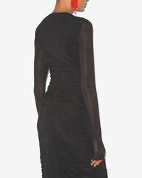 Top in gathered jersey V-neckline with a twisted yoke Gathered front Long sleeves Done up in back with a hook and a hidden zipper Fitted cut Style: HT0495FA-B3K01I VANDALIA 92% viscose, 8% elastane