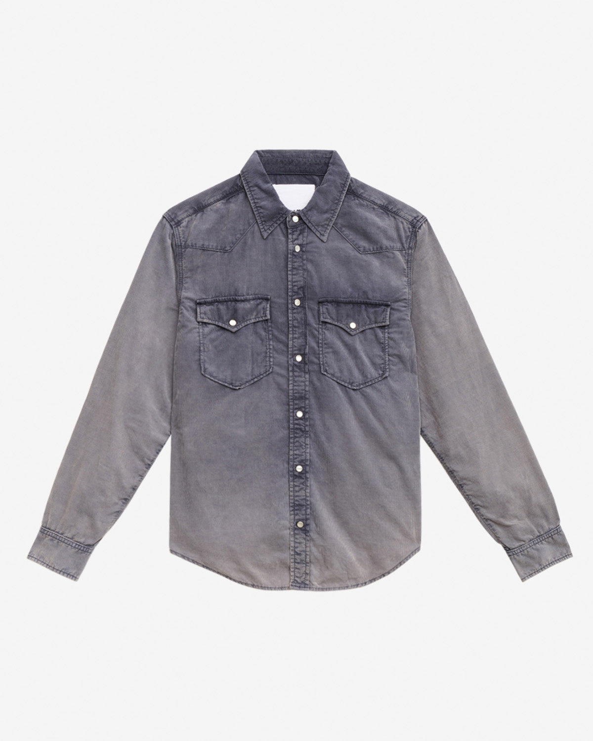 Overdyed western corduroy shirt Shirt collar Shoulder yokes Snap-fastened Patch pockets on the chest with snap-fastened flaps Long sleeves Straight snap-fastened cuffs Rounded hem Straight cut Style: CH0214HAC1I10H01VB VASCO 100% cotton