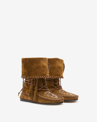 Braided and suede leather boots Slip-on style Round toes Graphic style patterns woven on the tops Leather laces Suede leather pompoms Turn-down style Edges adorned with soft braided leather Flat leather outsoles Soft leather insoles Soft leather lining Style: BO0210FAC2A05S50LB WINKI 100% soft leather