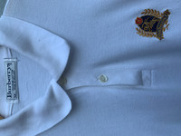 Vintage Burberry Embroidery Logo Polo Tee Size on tag : M Brand : Burberry Armpit to armpit : 22" Top to bottom : 28" Material : 100% Cotton Colour : White Condition : GOOD CONDITION Stich: all double