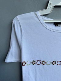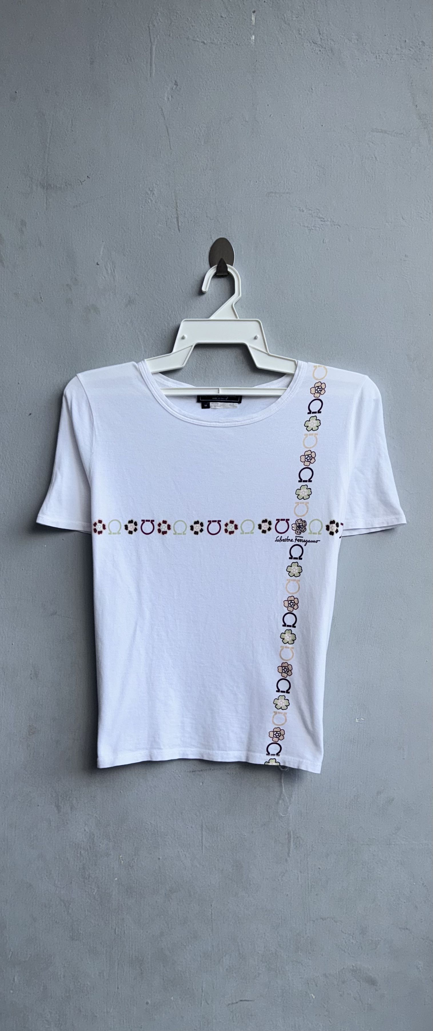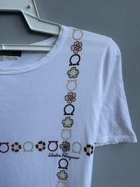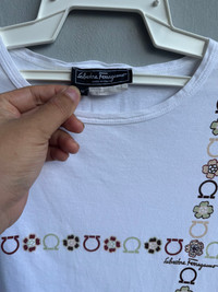 Size on tag : M Brand : Salvatore Ferragamo Armpit to armpit : 17.5" Top to bottom : 22" Material : 100% Cotton Colour : White Condition : GOOD CONDITION Stich: all double