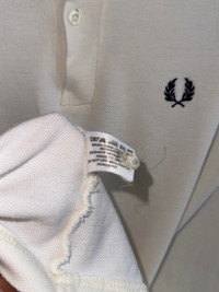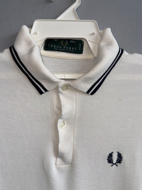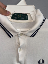 Size on tag : 42 Brand : Fred Perry Armpit to armpit : 20" Top to bottom : 28" Material : 100% Cotton Colour : White Condition : GOOD CONDITION Stich: all double