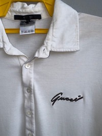 Size on tag : L Brand : Gucci Armpit to armpit : 20.5" Top to bottom : 27.5" Material : 100% Cotton Colour : White Condition : GOOD CONDITION Stich: all double