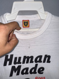 Size on tag : faded tag Brand : Human Made Armpit to armpit : 20" Top to bottom : 26.5" Material : 100% Cotton Colour : White Condition : GOOD CONDITION Stich: all single