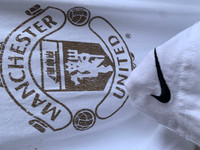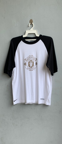 Manchester United x Nike Tee Size on tag : L Brand : Nike Armpit to armpit : 23" Top to bottom : 28.5" Material : 100% Cotton Colour : White/Black Condition : GOOD CONDITION Stich: all double
