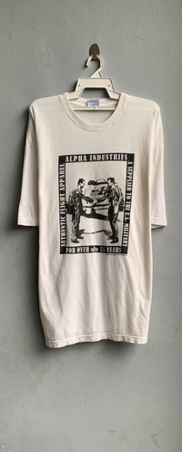 Vintage Alpha Industries Photo Tee Size on tag : 5 Large Brand : Alpha Industries Armpit to armpit : 28.5" Top to bottom : 34" Material : 100% Cotton Colour : White Condition : GOOD CONDITION Stich: all double