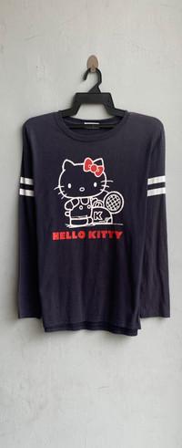 Hello Kitty L/S Tee Size on tag : L Brand : Hello Kitty Armpit to armpit : 20" Top to bottom : 26.5" Material : 100% Cotton Colour : Dark Blue Condition : GOOD CONDITION Stich: all double