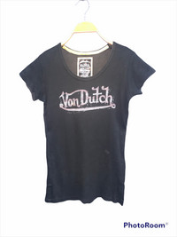 Von Dutch Tee Size on tag : M Brand : Von Dutch Armpit to armpit : 15.5" Top to bottom : 26" Material : 100% cotton Colour : black Condition : GOOD CONDITION Stich: all double