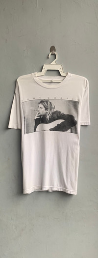 Vintage Kurt Cobain Photo Tee Size on tag : tag faded Brand : Kurt Cobain Armpit to armpit : 20.5" Top to bottom : 29" Material : 100% Cotton Colour : White Condition : GOOD CONDITION Stich: all double