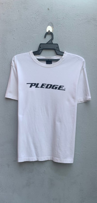 Pledge Spellout Tee Size on tag : no size on tag Brand : Pledge Armpit to armpit : 21.5" Top to bottom : 26" Material : 100% Cotton Colour : White Condition : GOOD CONDITION Stich: all double