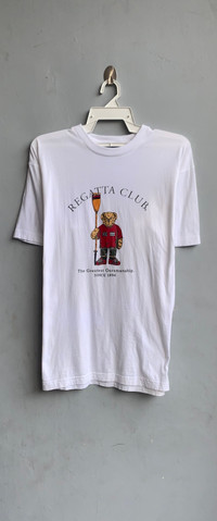 Polo Bear Regatta Club Spellout Tee Size on tag : L Brand : Regatta Club Armpit to armpit : 21.5" Top to bottom : 28" Material : 100% Cotton Colour : White Condition : GOOD CONDITION Stich: all double
