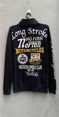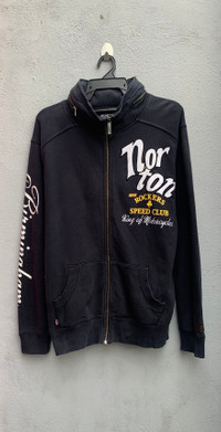 Norton Embroidered Zipped Up Sweatshirt Hoodie Size on tag : XL Brand : Norton Armpit to armpit : 23.5" Top to bottom : 28.5" Material : 100% Cotton Colour : Black Condition : GOOD CONDITION Stich: all double