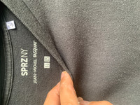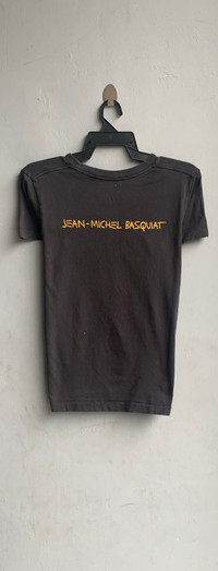 Jean Michel Basquiat x Uniqlo Tee Size on tag : L Brand : Jean Michel Basquiat Armpit to armpit : 19" Top to bottom : 25" Material : 100% Cotton Colour : Black Condition : GOOD CONDITION (faded sun) Stich: all double