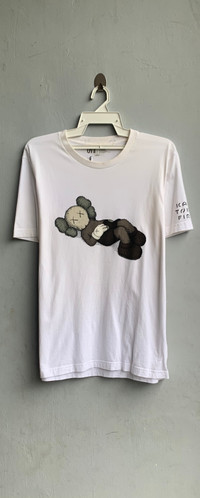 Kaws Collab Uniqlo Tee Size on tag : L Brand : Uniqlo Armpit to armpit : 21.5" Top to bottom : 28.5" Material : 100% Cotton Colour : White Condition : GOOD CONDITION Stich: all single