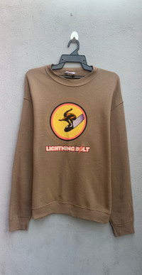 Vintage Lightning Bolt Sweatshirt Size on tag : M Brand : Lightning Bolt Armpit to armpit : 24" Top to bottom : 27.5" Material : 100% Cotton Colour : Brown Condition : GOOD CONDITION Stich: all double